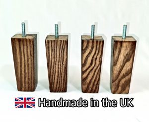 Solid Wood Furniture Legs – 12cm Height – M8 thread stud – Ash Wood – Stained finish – Supplied with Glides, M8 Washers and M8 T-Nuts